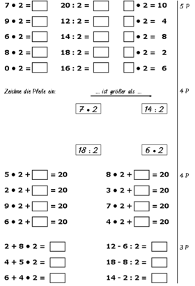 Rechenarbeiten Klasse 2