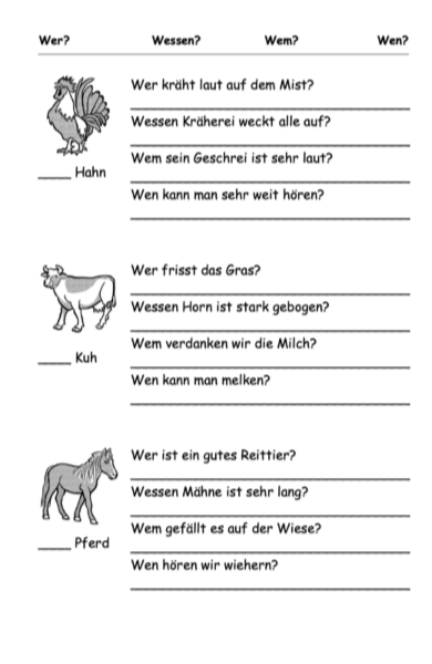Hinweis: Lassen Sie Fragen in ganzen Sätzen stellen!