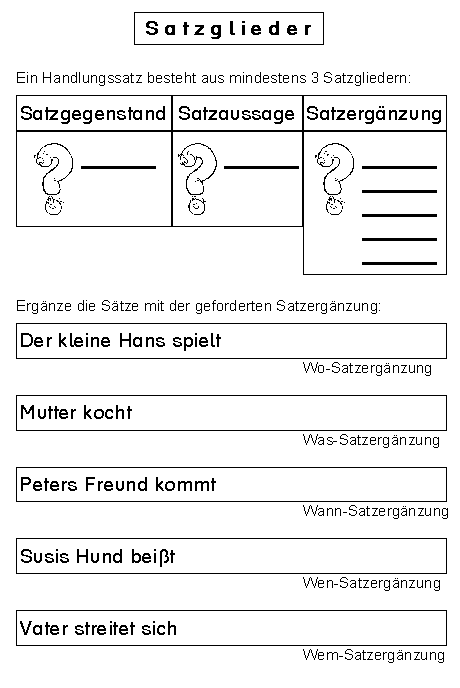 Satzglieder mit Hilfe von Fragewörtern unterscheiden und bestimmen.